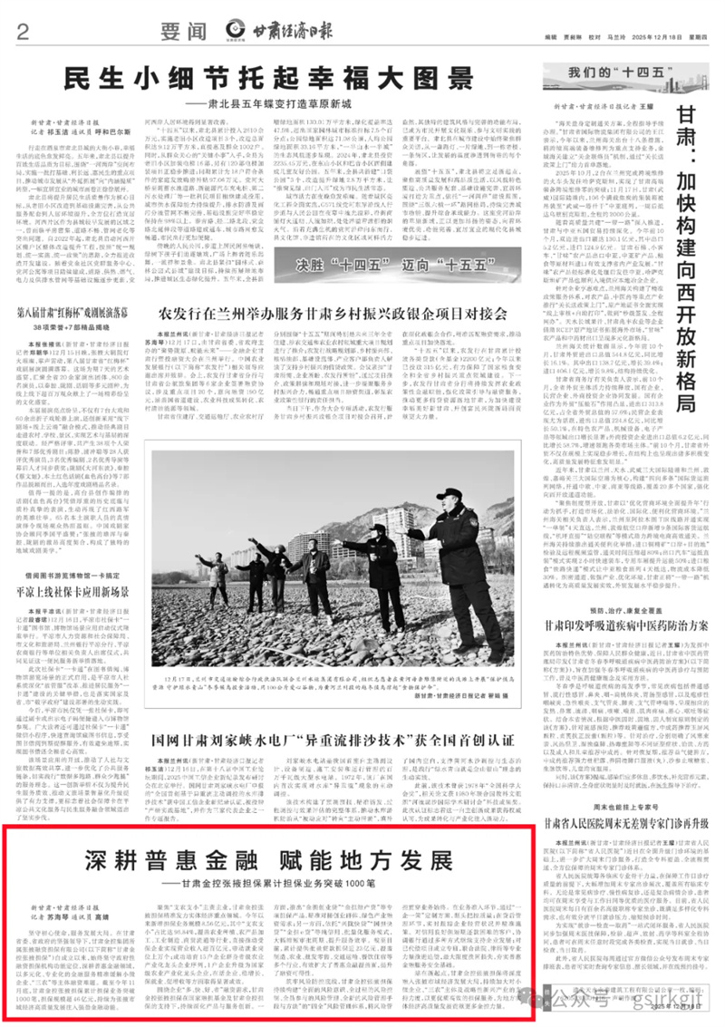 站在新起点,甘肃金控张掖担保将深度融入张掖市域经济发展大局,持续加大对小微企业、“三农”主体及战略性新兴产业的支持力度,以更优质高效的担保服务,为地方实体经济高质量发展贡献更多金控力量。
