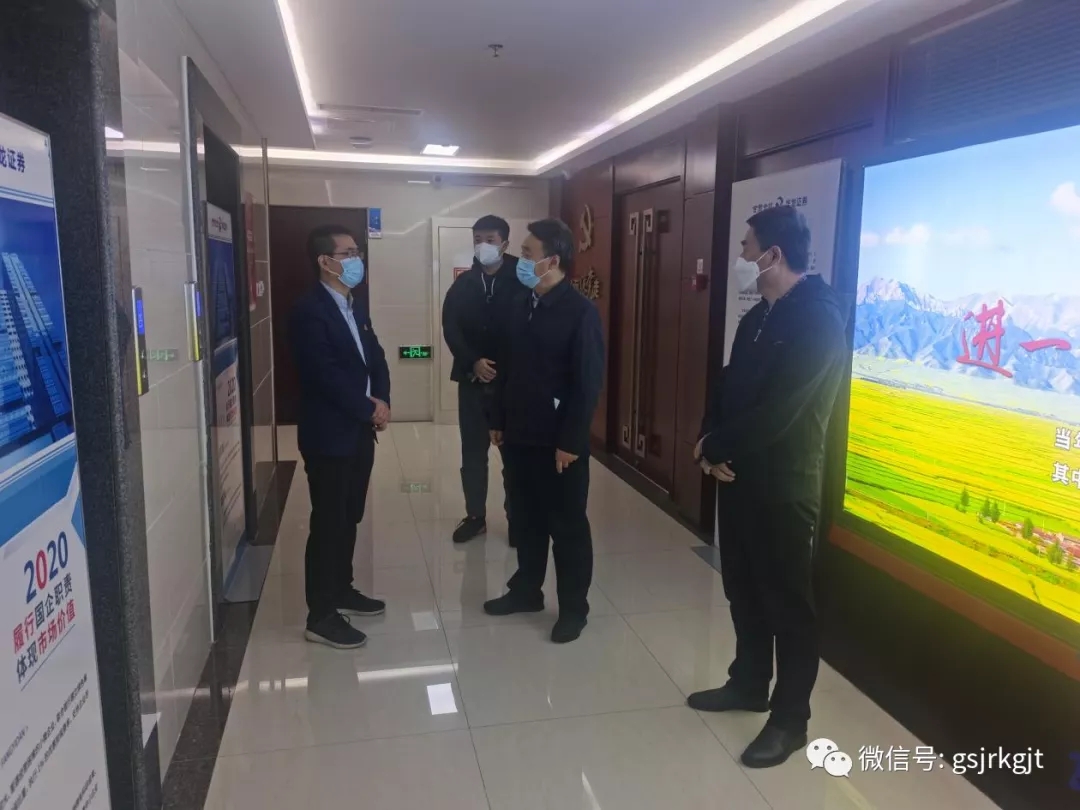 祁建邦一行采取“四不两直”的方式,先后来到华龙证券东岗西路营业部、甘肃金控担保集团、陇原融资租赁公司和甘肃股权交易中心,看望慰问值班值守员工,详细了解各单位疫情防控值班值守安排、防疫举措和业务发展、服务保障有关情况。他强调,一要切实提高政治站位,各单位主要负责人要扛牢疫情防控“第一责任人”责任,履好职尽好责,不懈怠不缺位,看好自己的门,管好自己的人,层层压实责任,确保集团防疫工作高效开展。二要充分认识当前疫情形势的复杂性、不确定性,时刻绷紧疫情防控这根弦,坚决贯彻落实属地疫情防控各项规定和措施要求以及集团工作部署,扎紧筑牢内部防线,严把人员和场所关口,做到底数清、情况明,随时做好紧急情况应急处置准备,确保安全无忧。三要充分发挥自身金融优势,大力推动业务发展,灵活运用各项金融手段,协同联动,全力支持疫情防控和经济社会发展,持续发扬开拓创新的优良作风和攻坚克难的担当精神,为我省打赢疫情防控遭遇战、阻击战贡献金控力量。